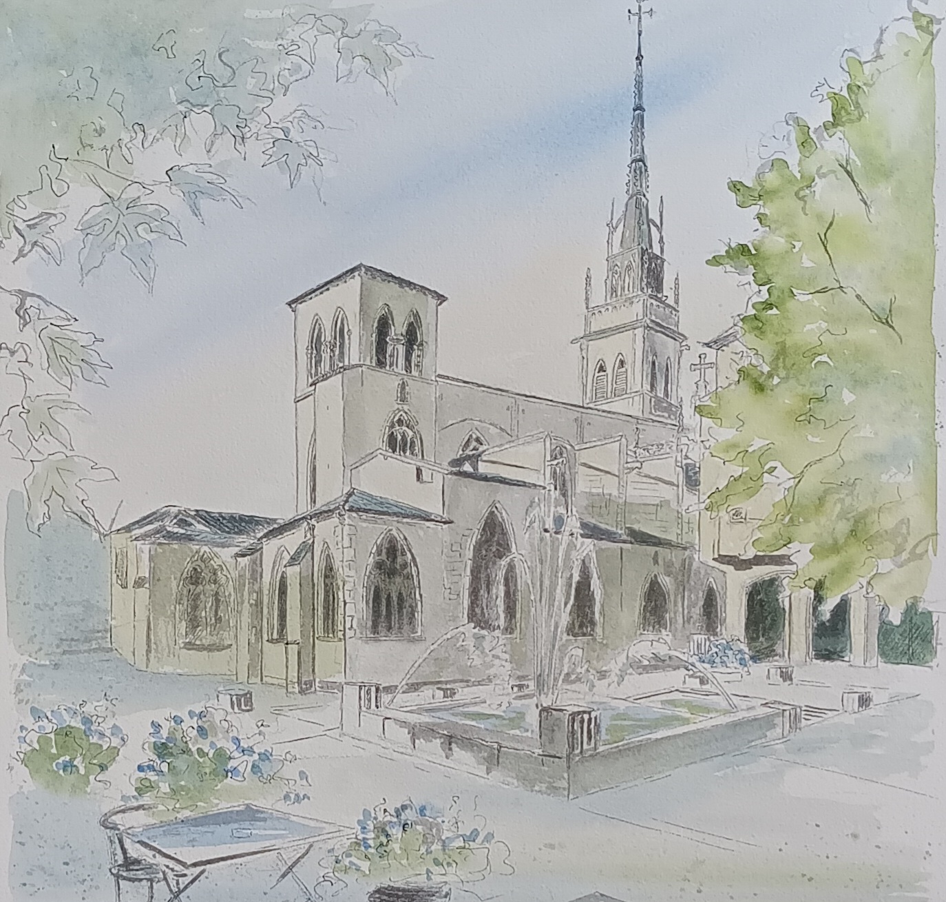 Sérigraphie aquarellée : Notre Dame des Marais 50 X 60 présentée lors des journées du Patrimoine : printemps, automne, hiver et nuit… et sur commande.